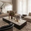 Thiết kế hiện đại, lấy cảm hứng từ phong cách tối giản (minimalist) kết hợp nghệ thuật đường cong, tạo điểm nhấn sang trọng cho không gian phòng khách.