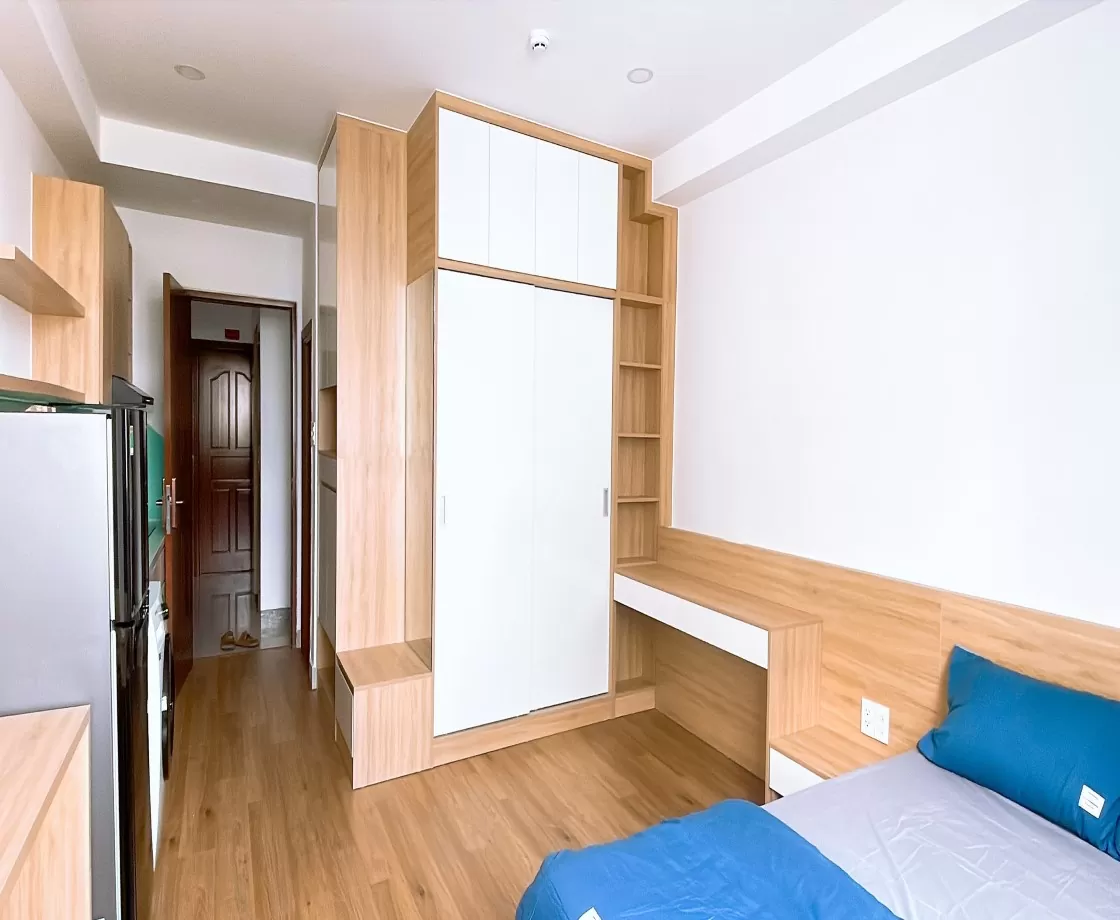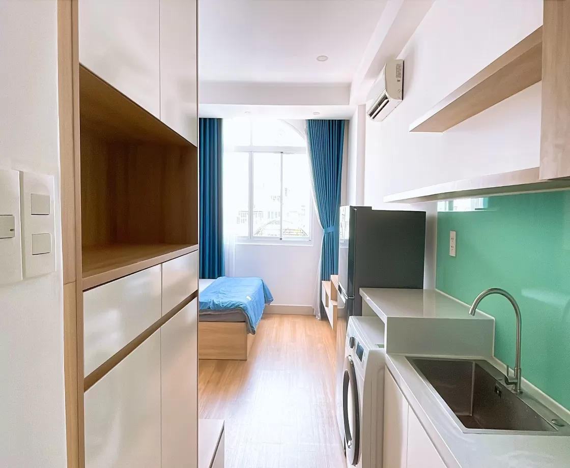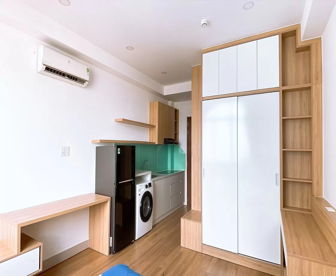 Thiết kế dạng studio, có bếp riêng và nhà vệ sinh khép kín, đảm bảo sự riêng tư tuyệt đối.